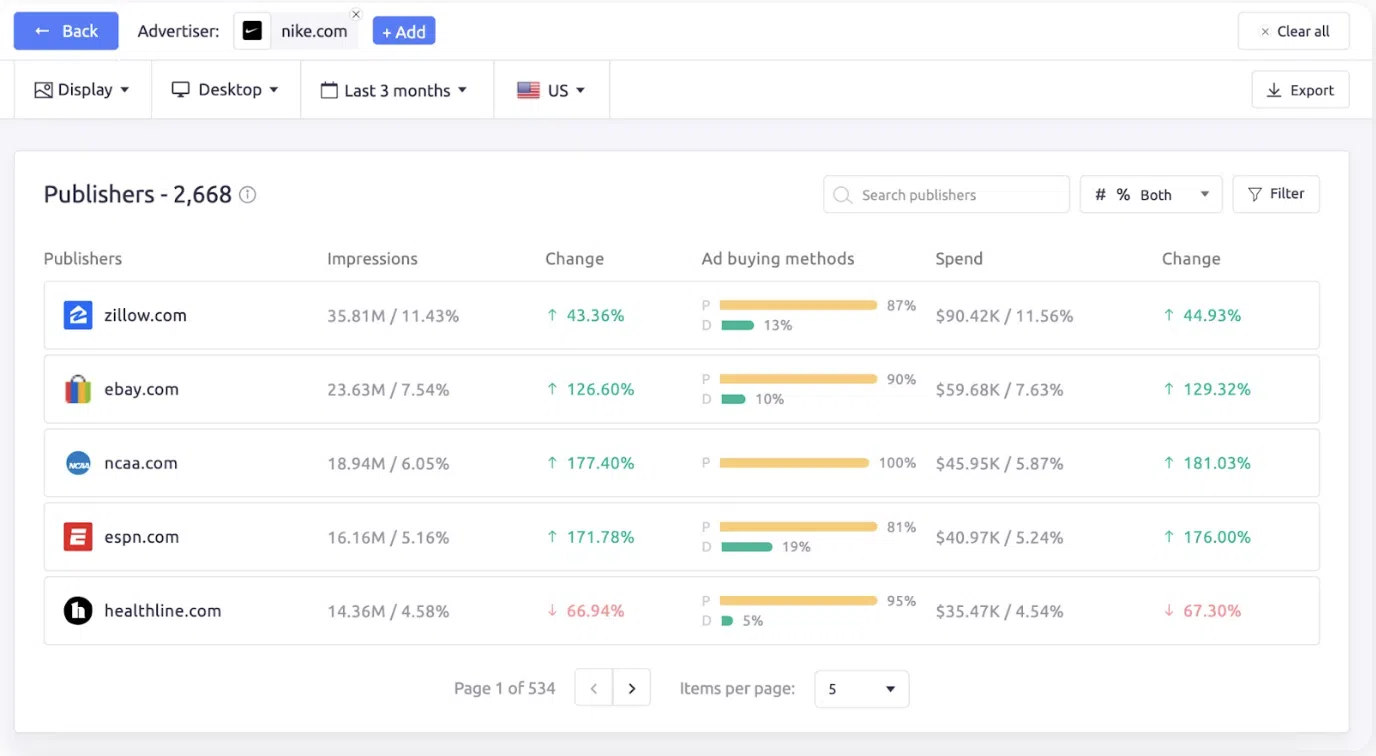 - Cota de voce: rapoartele AdClarity oferă informații despre alocarea inventarului pe site-ul dvs., precum și despre campaniile concurenților dvs. Înțelegerea unde își alocă concurenții cheltuielile publicitare vă ajută să identificați jucătorii cheie de pe piață și să elaborați strategii în consecință.