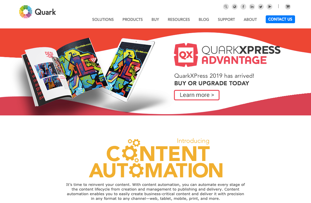 Quark automatizează ciclul de viață al conținutului de la crearea și gestionarea până la publicare și livrare. Platforma oferă clienților caracteristica „conținut inteligent”, care acceptă crearea structurată într-un mediu familiar de tip procesor de text, utilizând un browser Web sau Microsoft Word. Utilizatorii pot crea și reutiliza conținut autorizat, diagrame, tabele, imagini, date, videoclipuri și multe altele.