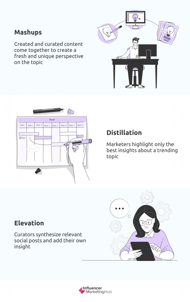 Dar, deși curatarea conținutului ar trebui să suplimenteze strategia dvs. de creare de conținut, nu ar trebui să o înlocuiască. HootSuite recomandă marketerilor să distribuie 60% conținut curatat și 40% conținut creat. Scopul acestei strategii este de a oferi resurse suplimentare și puncte de discuție în care să se implice adepții tăi. Există multe avantaje în utilizarea acestei abordări de marketing.