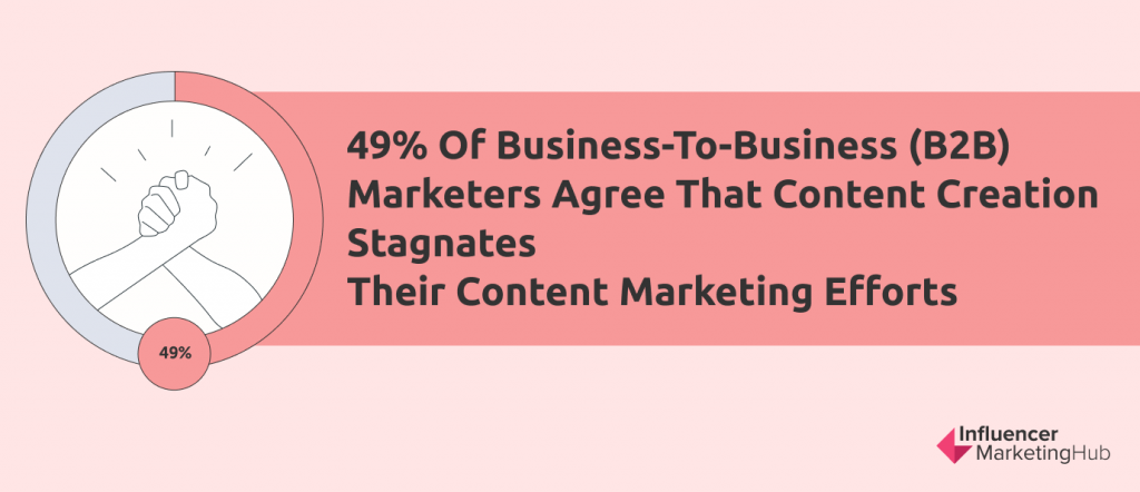 Potrivit unui raport al Institutului de marketing de conținut , 49% dintre agenții de marketing de la business-to-business (B2B) sunt de acord că crearea de conținut stagnează eforturile lor de marketing de conținut. De la cercetare și scriere până la publicare și implicare, crearea de noi postări necesită pur și simplu timp. Și pentru 55% dintre agenții de marketing care au propria echipă de creare de conținut, costă și o mulțime de bani.