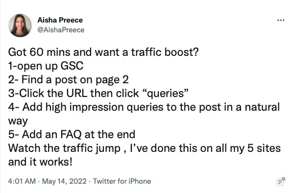 Nu vă cer să vedeți greșeala în tweet-ul de mai sus, ci să vedeți o cantitate semnificativă dedicată optimizării conținutului.