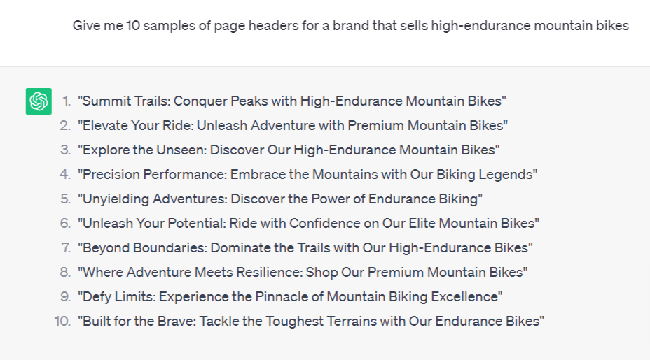 ChatGPT scurtează în mod convenabil multe dintre detaliile copywriting-ului, ajutând scriitorii să dezvolte schițe și liste de mostre de conținut din care pot selecta și rafina cele mai bune rezultate.