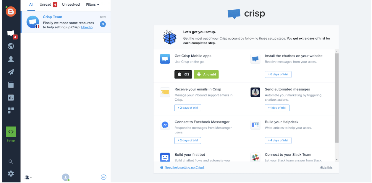 Puteți să vă înscrieți pentru integrare pentru a răspunde la întrebările clienților de acolo sau să utilizați aplicațiile. Totul este sincronizat. Cu Crisp, puteți discuta cu vizitatorii site-ului, puteți integra instrumentele preferate și puteți oferi o experiență excelentă pentru clienți.