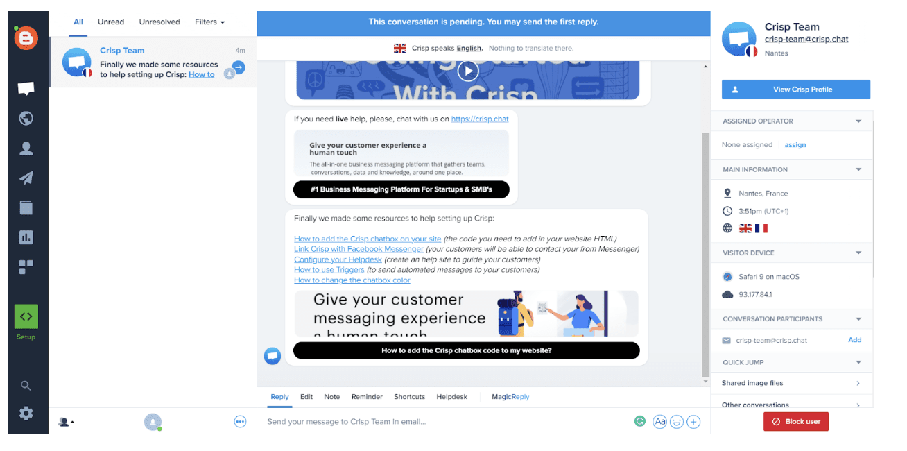 Crisp este o soluție puternică, all-in-one pentru comunicarea cu clienții, care oferă o gamă largă de funcții și integrări pentru a ajuta companiile să-și eficientizeze procesul de asistență pentru clienți.