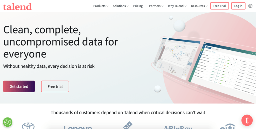 O altă platformă de top de gestionare a datelor este Talend . Talend oferă de fapt mai multe tipuri diferite de platforme, toate legate de date, iar una dintre aceste platforme este un instrument de gestionare a datelor.