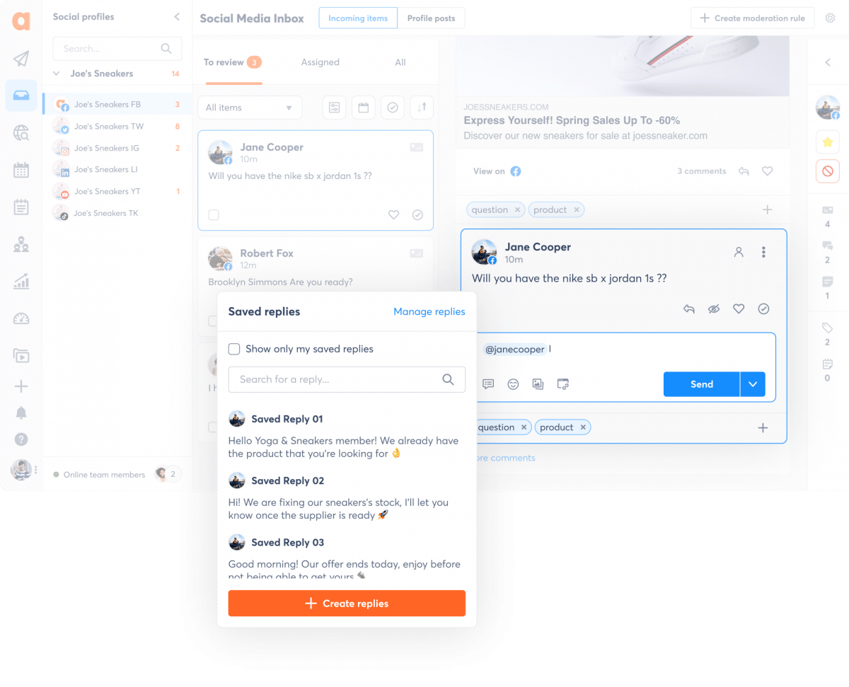 Salvarea răspunsurilor pentru fiecare platformă de socializare din Agorapulse a fost incredibil de utilă. Anterior, echipa folosea diferite instrumente și documente și nu era convenabil sau eficient în timp să le acceseze.