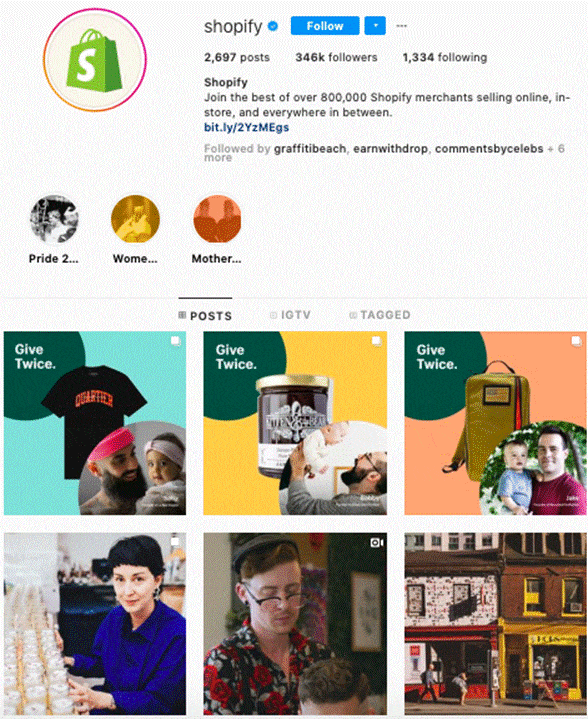Aceasta este pagina de Instagram a Shopify. Pagina este plină de scurte clipuri video cu utilizatori reali care împărtășesc experiențe despre modul în care Shopify i-a ajutat să-și lanseze propria afacere.