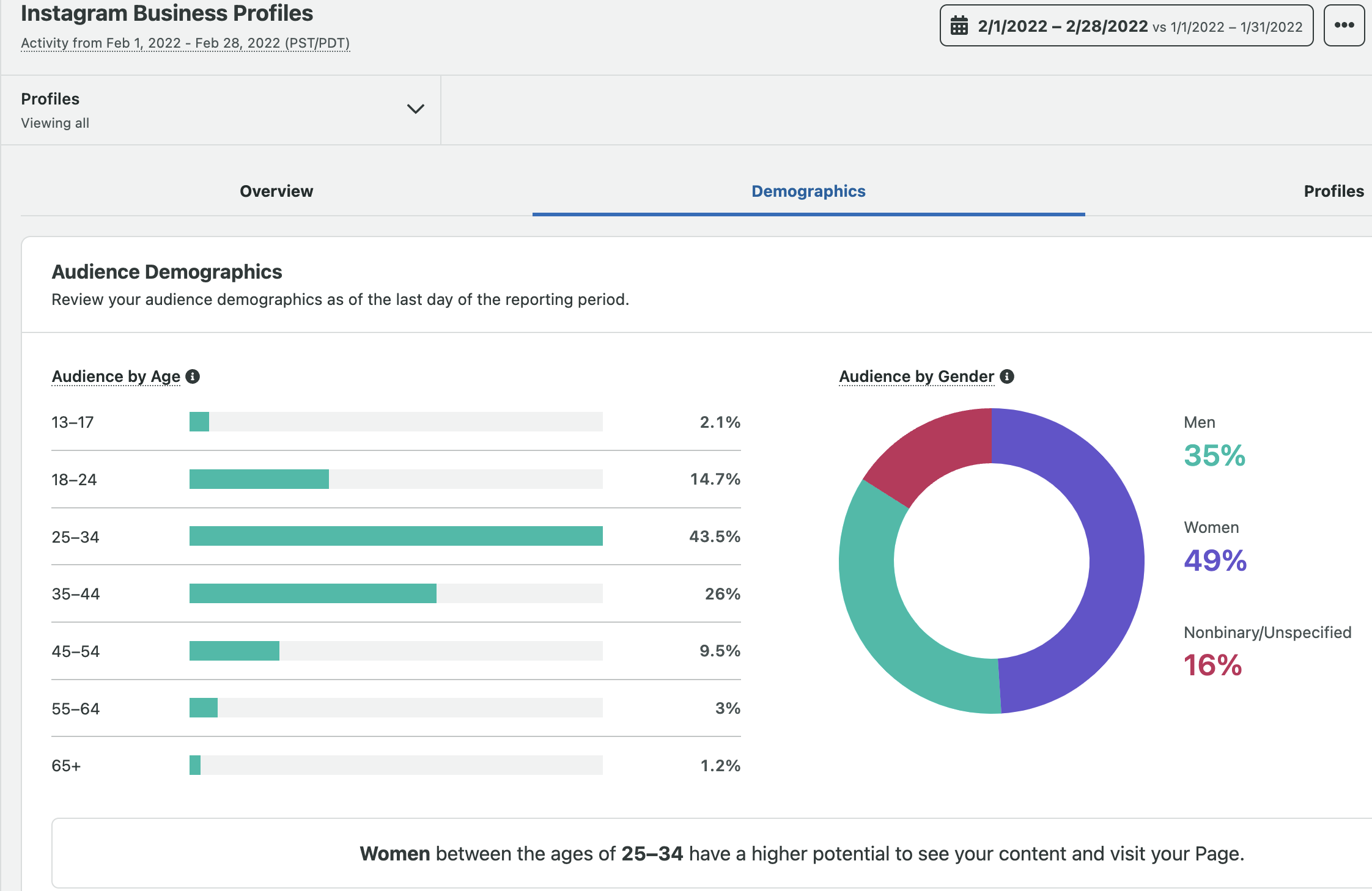 Obțineți date demografice din raportul dvs. nativ Instagram Profiluri de afaceri. În combinație cu raportul de performanță post, veți afla dacă conținutul dvs. rezonează cu interesele lor.