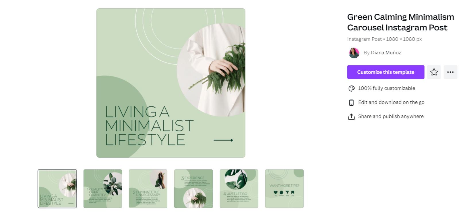 Una dintre cele mai bune practici de urmat pe Instagram este menținerea unui feed consistent, care să conțină imagini de înaltă calitate. Aceasta înseamnă că ar trebui să alegeți cu atenție elementele vizuale pentru postările din carusel, pentru a vă asigura că feedul dvs. arată coeziv și conform mărcii. Șabloanele de carusel Instagram vă pot ajuta în acest sens.