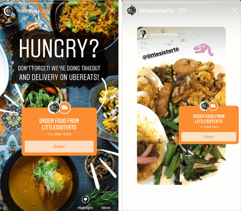 Similar cu cardurile cadou, mărcile alimentare pot profita și de funcția Comandă alimente, care le permite utilizatorilor să comande alimente de la afacerea dvs. direct prin Instagram.