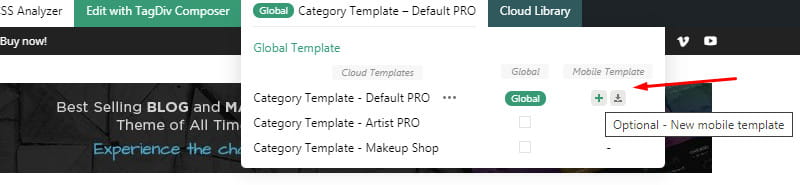 Fila Cloud Library care apare în partea din dreapta sus a ecranului vă va permite să importați șabloane noi. Un nou șablon va trebui să fie importat dacă intenționați să modificați o anumită pagină sau șablon de postare. TagDiv Composer vă va permite să schimbați noul șablon după cum doriți.