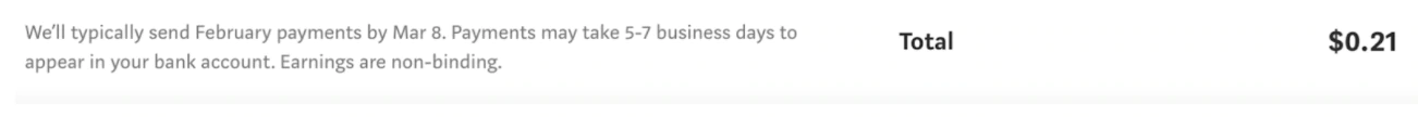 Poate fi un progres lent pentru unele activități – sperăm că falca ta nu va lovi prea tare când te uiți la această captură de ecran din câștigurile mele medii lunare: