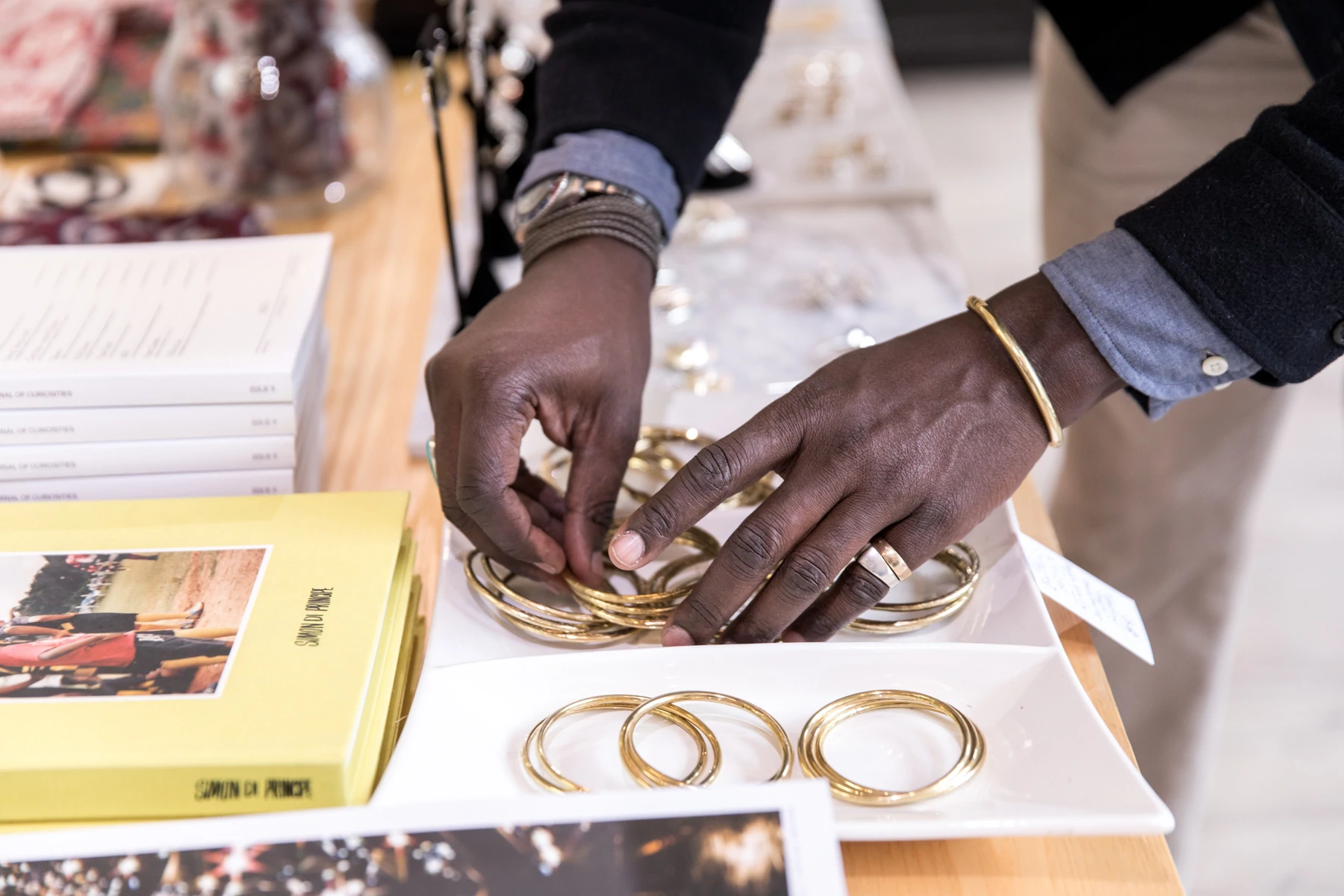 Magazinul din centrul orașului Kazeem este o combinație de descoperiri de stil de viață, piese vintage selectate și bunuri de bun gust pe tema Maine (cum ar fi topoarele Brant și Cochran fabricate local), dar ochiul său pentru modă face cu adevărat spațiul să strălucească. El întrerupe conversația noastră pentru a glumi cu un client adolescent care răsfoiește teancurile impresionante de LP-uri. „Ești prea tânăr pentru acestea”, spune el. „Oh, și nu sunt de vânzare.”