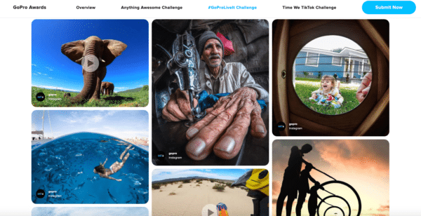 Premiile GoPro sunt un exemplu excelent de concursuri recurente care captează UGC. Pentru a intra, participanții trebuie doar să facă fotografii sau clipuri pe GoPro, să le încarce pe site-ul web GoPro și să aibă șansa de a fi prezentați și plătiți pentru trimitere.