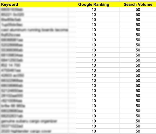 Este grozav, dar compania are, de asemenea, peste 25 de clasamente inferioare la distanță de lovitura. Deși volumul de căutare se situează în jurul a 50, acestea sunt expresii de cuvinte cheie foarte relevante, care merită vizate.