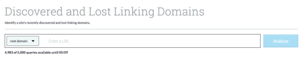 Pentru a descoperi backlink-urile câștigate și pierdute, verificați traficul site-ului dvs. de referință în analiza site-ului dvs. sau introduceți domeniul în acest instrument Moz: