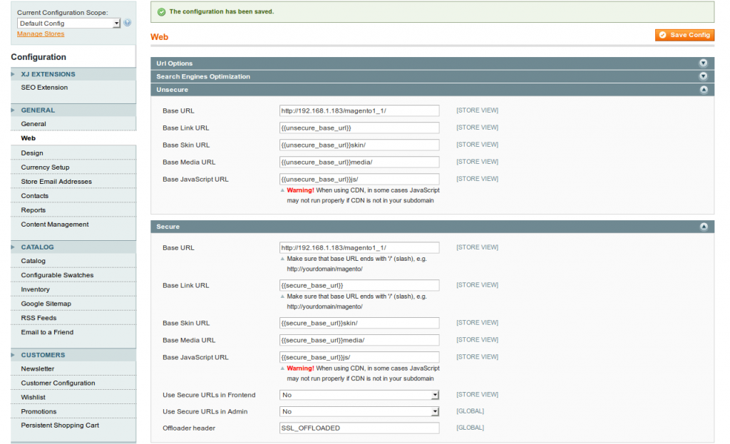 – Accesați Panoul de administrare > Sistem > Configurare > General > Web > Securizat.