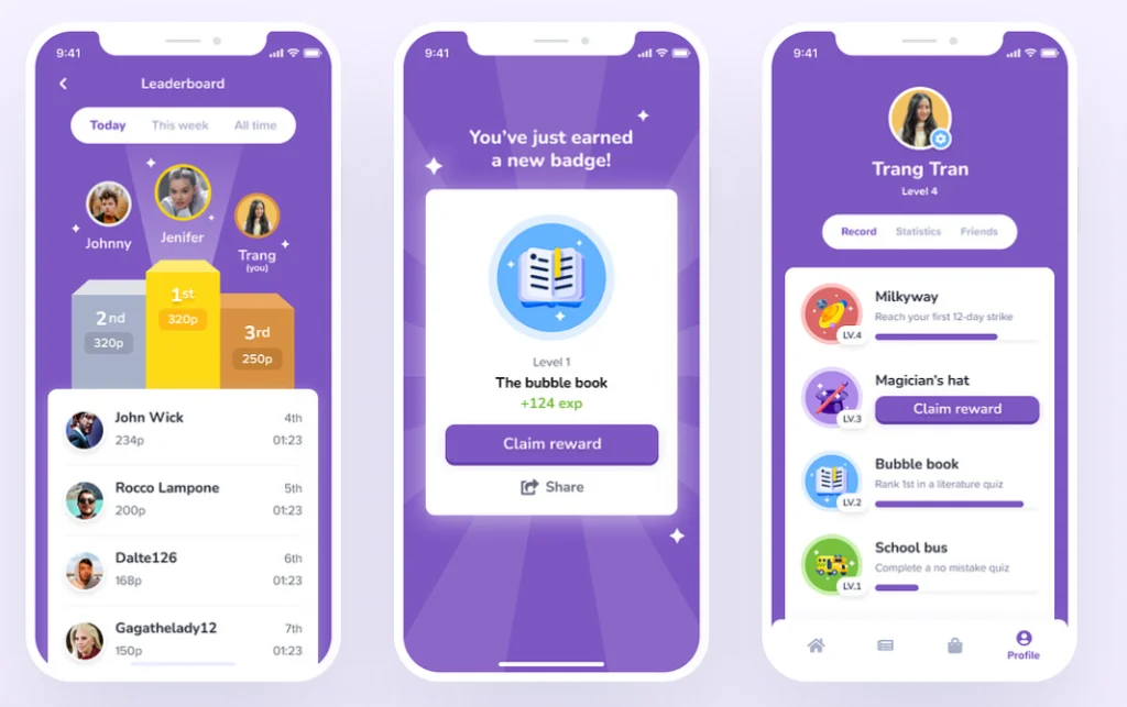 Dacă doriți să faceți din gamification o parte integrantă a experienței clienților pe proprietatea dvs. digitală, cum ar fi aplicația dvs., luați în considerare lansarea acesteia ca o funcție. Să presupunem că rulați un site web de ziar online unde doriți să introduceți insigne pentru cititorii care folosesc aplicația. Aceste insigne pot include titluri precum „Cititor implicat”, „Expert în categorii” și „Partajare socială”, care recompensează utilizatorii care participă activ la discuții, se specializează în anumite categorii și distribuie articole pe rețelele sociale.