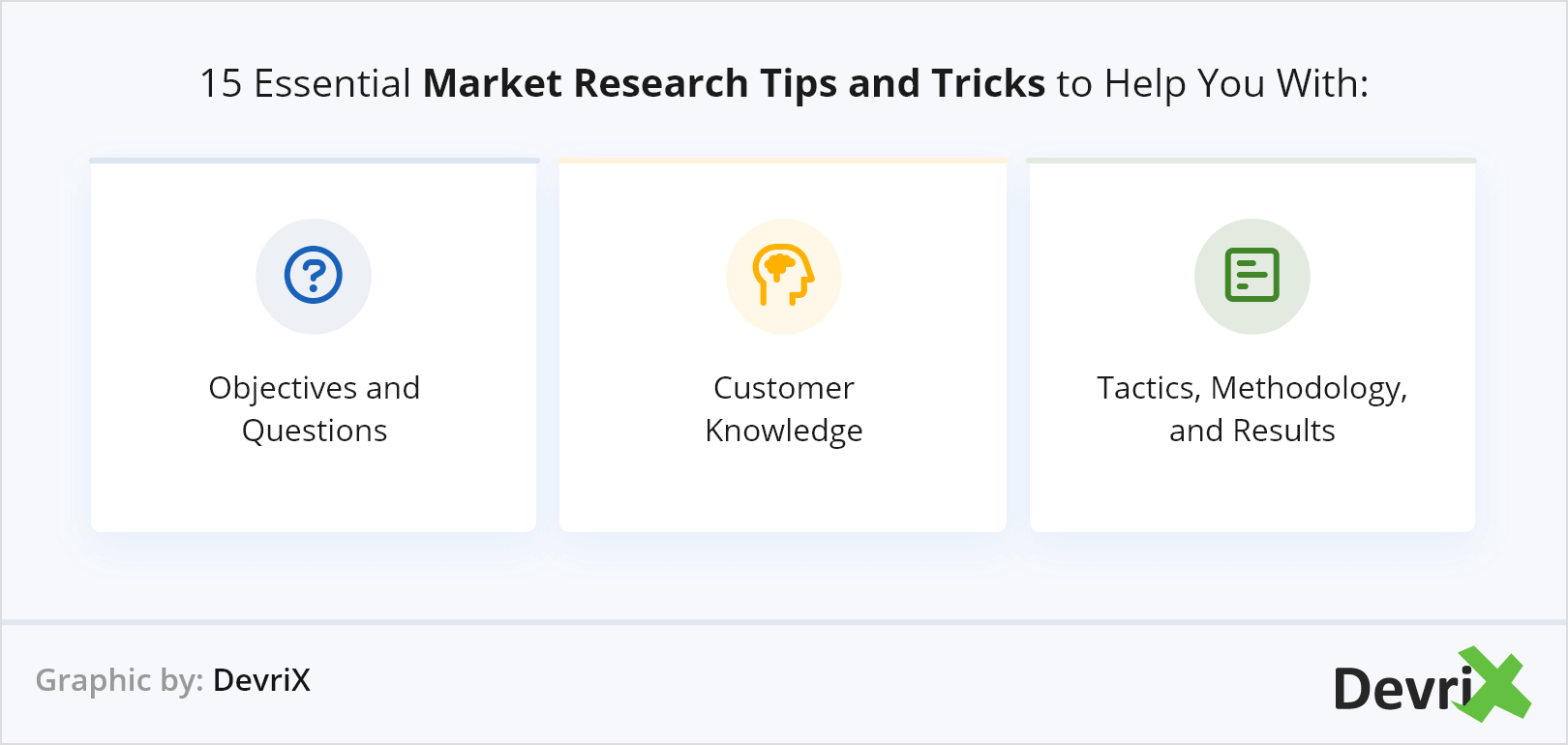 В этой статье мы перечислили 15 основных советов и рекомендаций по исследованию рынка, сгруппированных в три раздела: