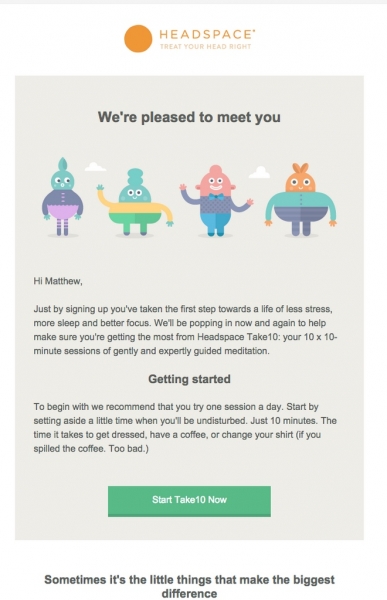 - Выбирайте яркие цвета. В этом примере отправитель отлично использует зеленый цвет. Он отделяет призыв к действию от остального контента. Если есть что-то, что вы хотите выделить, сделайте это ярким цветом. Конечно, вы захотите использовать этот цвет экономно, иначе он потеряет свой эффект.