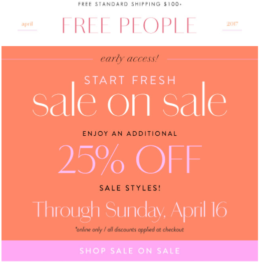 - Создайте ощущение срочности. Дайте клиентам повод действовать быстро, а не оставлять письмо в папке «Входящие». В приведенном выше примере даты акции очевидны. Используйте также активный язык. Чтобы связать сезонную рекламную акцию, это электронное письмо от Banana Republic Factory привносит немного индивидуальности в их язык CTA, побуждая читателей «прыгать в магазин».