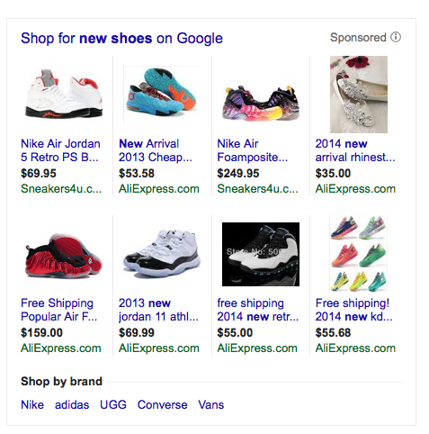 - Когда вы гуглите «новая обувь», появляется список соответствующих ссылок вместе с несколькими изображениями товаров.