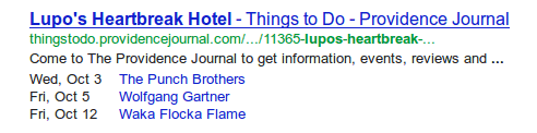 - Думайте о подсветке данных как об инструменте, чтобы научить Google тому, что важно на вашем сайте. Вам не нужен опыт работы с HTML, просто зайдите на свой сайт, выделите определенные типы данных и классифицируйте их. Например, если местный отель выделяет текст о своей предстоящей серии концертов и классифицирует его как «событие», Google покажет его в поиске следующим образом: