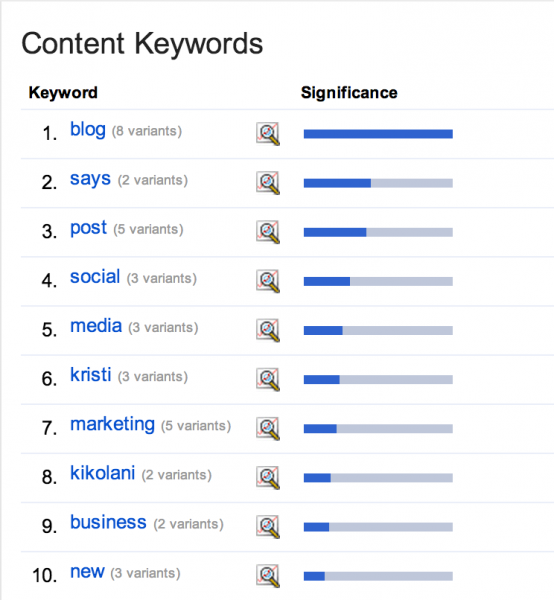 - Это список наиболее значимых ключевых слов, которые используются на вашем сайте.