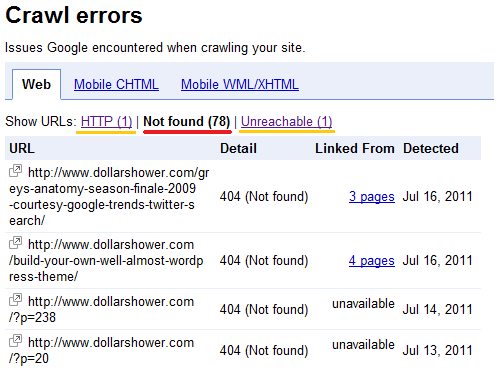 - Когда робот Googlebot просматривает ваш сайт, он будет перечислять все ошибки, которые он найдет на вашем сайте. Вот типичный список ошибок сканирования.