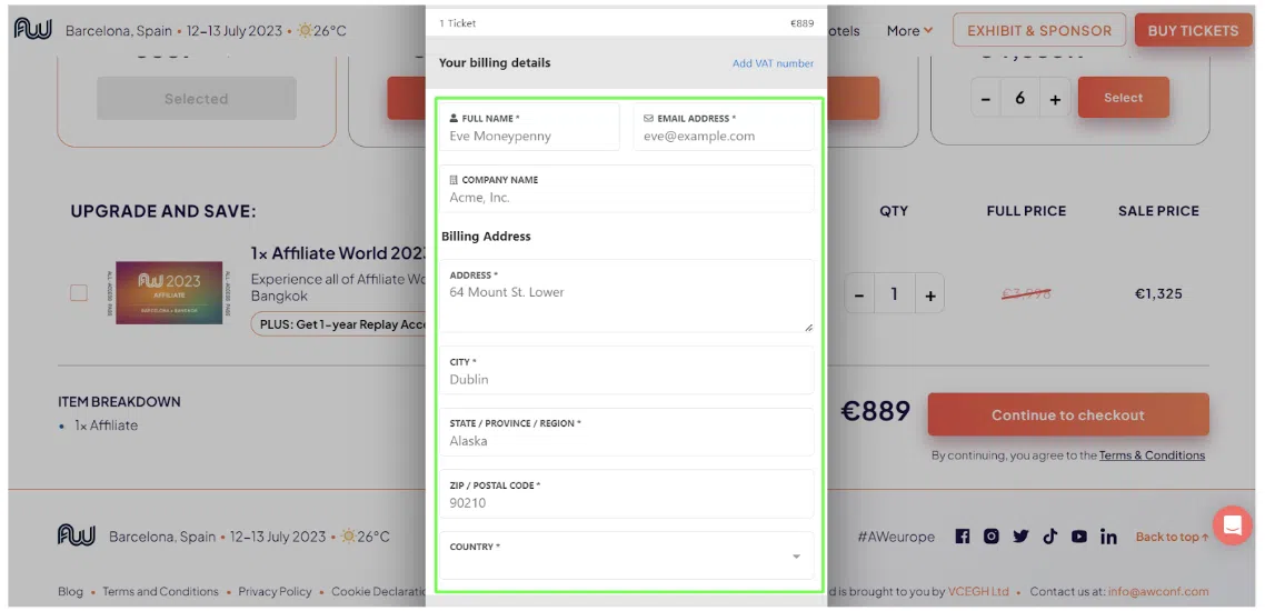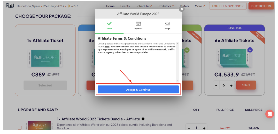 Шаг – 1: Просто зайдите на официальный сайт Affiliate World Conference Barcelona и нажмите «КУПИТЬ БИЛЕТЫ».