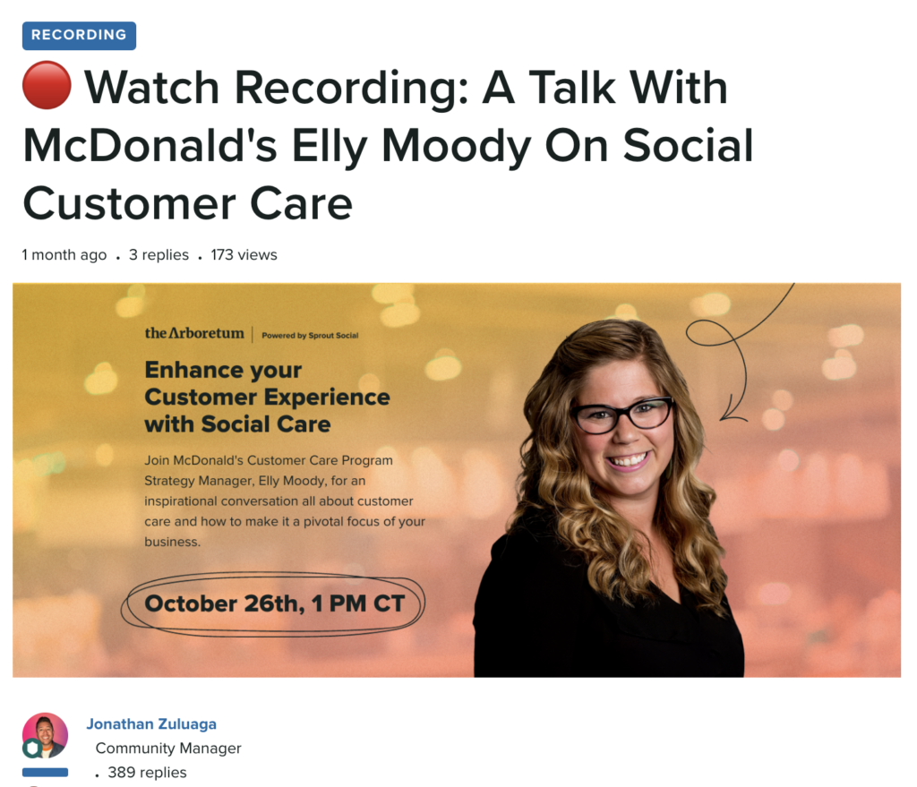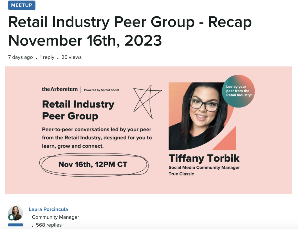 Виртуальное сообщество The Arboretum (Arb), созданное на платформе Sprout, созданное в марте 2022 года, стало процветающим центром для специалистов в области социальных сетей и маркетинга — от практиков до руководителей высшего звена. Проведя более 30 эксклюзивных мероприятий с участием основных докладчиков ведущих брендов и многочисленных дискуссий между коллегами, сообщество приносит ощутимую пользу членам из 69 стран.