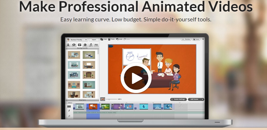 С GoAnimate даже новичок может легко начать работу. Вы можете снимать с нуля или выбрать шаблон видео из их встроенной библиотеки. Они также предоставляют изображения, звуковые файлы, анимацию и видео от сторонних поставщиков, таких как Adobe Flash.