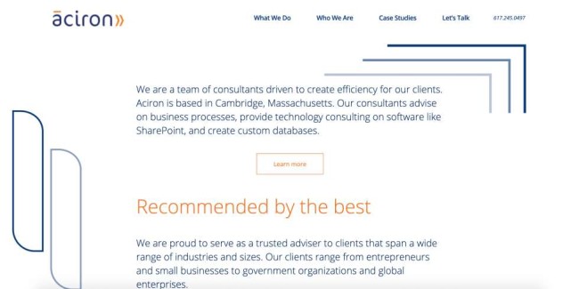 Компания адаптирует свою стратегию для каждого отдельного клиента в соответствии с его потребностями и предлагает решения, которые дают наилучшие результаты. Aciron работал с многочисленными известными клиентами, включая MassDot, Ver-Tex Construction, Massachusetts General Hospital и другие медицинские фирмы и правительственные организации.