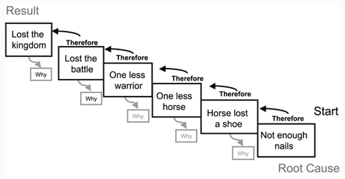 Спроси почему?" 5 раз, чтобы добраться до основной причины проблемы. Вернемся к английской пословице: