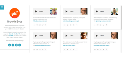 Если вы запускаете стартап и хотите развивать свой бизнес с помощью быстрой информации, я советую вам послушать Growth Byte, потому что вы можете найти там лучший онлайн-контент для роста стартапов. 2-3-минутные сводки отлично подходят для тех, кто не хочет слушать длинные подкасты.