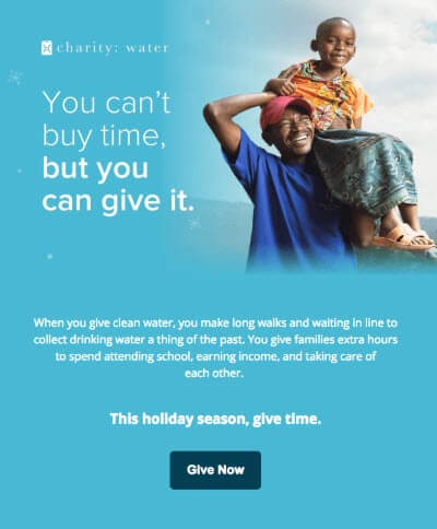 В приведенном выше примере из Charity: Water человеческий элемент отца и сына эмоционально связан с нами. И идея пожертвования денег, чтобы дать другим больше времени со своими семьями, — это история, которую люди могут поддержать и полюбить. Независимо от того, какая у вас некоммерческая организация, вам нужно создать привлекающий внимание заголовок, который удерживает внимание читателей и побуждает их к действию.