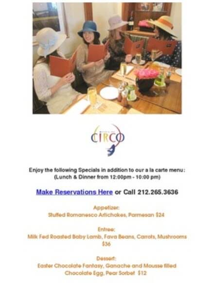 В приведенном ниже примере Le Cirque хорошо продвигает пасхальное специальное предложение, которое идеально подходит для групп друзей: