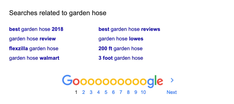 Например, если вы продаете садовые шланги, транзакционный поиск будет «резиновый садовый шланг». Между тем информационным ключевым словом может быть «как правильно выбрать садовый шланг». В процессе мозгового штурма и исследования вы обнаружите новые варианты, ассоциации и связанные поисковые запросы, которые помогут вам составить более полное представление о том, как ваши клиенты потенциально могут использовать поисковые системы для поиска вашего бизнеса.