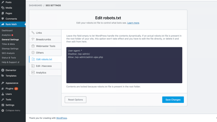 Если вы используете Rank Math, вы можете получить доступ к файлу robots.txt своего сайта, перейдя в Rank Math > Общие настройки > Изменить robots.txt . Затем вы можете внести свои изменения: