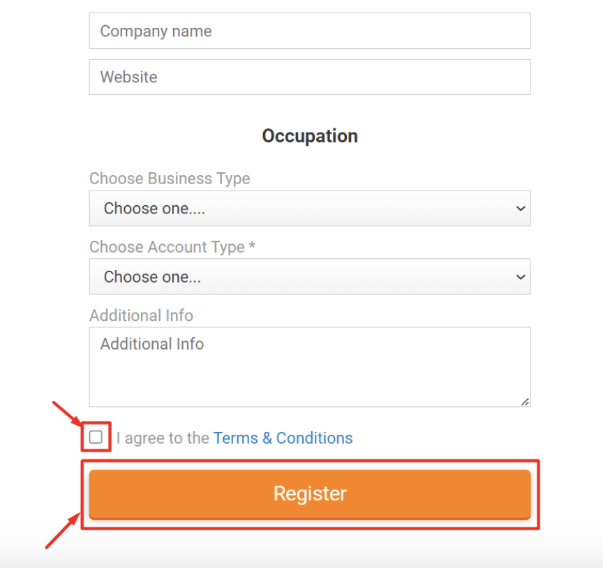 Шаг - 4: прокрутите вниз, установите флажок и нажмите «Зарегистрироваться».