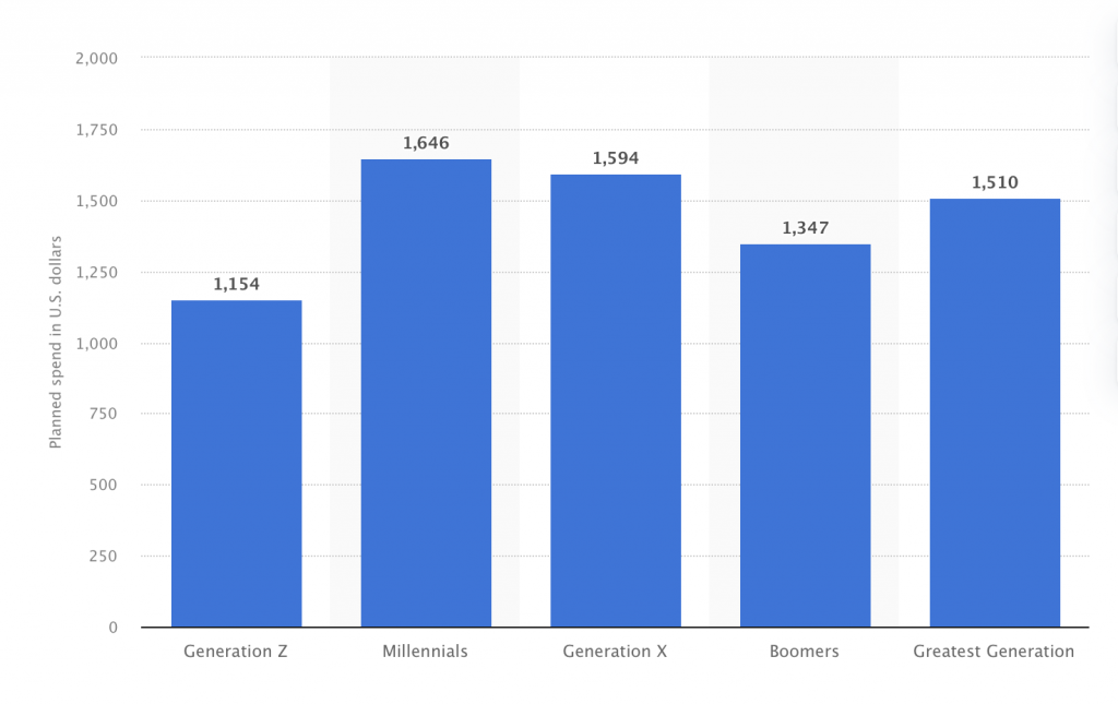 Согласно онлайн-данным, предоставленным Statista, в 2021 году поколение Z планирует потратить 1154 доллара США во время праздничного сезона в США. Это может быть ниже, чем у других поколений, но это все же значительная сумма, учитывая, что многие из них только в подростковом возрасте.
