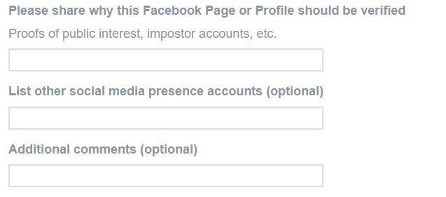 Или, возможно, вы хотите пройти проверку на Facebook, потому что ваша учетная запись рискует потерять доверие из-за самозванцев. Если вы уже видели появление учетных записей самозванцев, вы можете добавить ссылки, подтверждающие ваше утверждение.