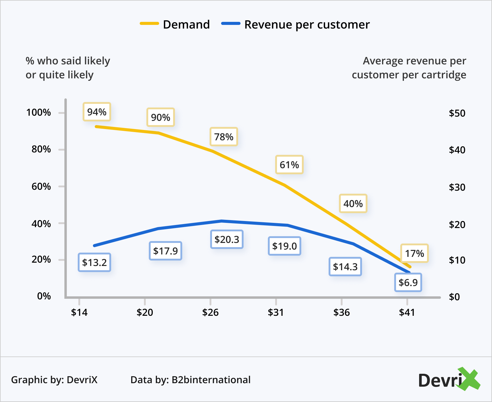 Такой подход позволяет компаниям оценить соотношение спроса и выручки на одного покупателя и найти оптимальную цену на продукт.