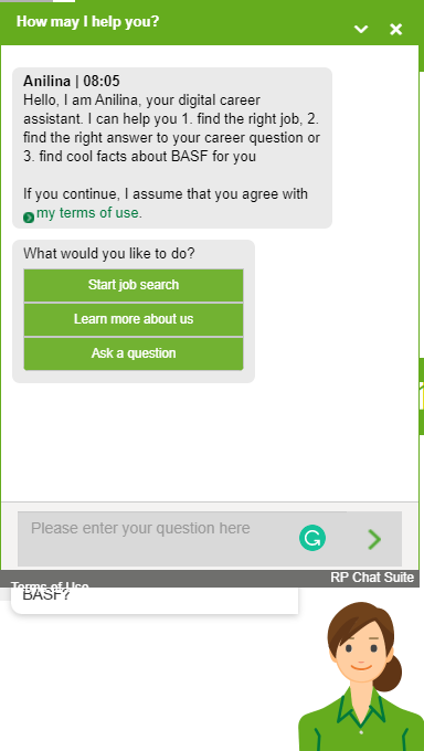 12. Немецкая химическая компания BASF Group использует WhatsApp для привлечения потенциальных сотрудников. Анилина, цифровой карьерный помощник в виде чат-бота, помогает быстро и на месте отвечать на вопросы кандидатов. Для более активных бесед кандидаты могут связаться с представителями с понедельника по пятницу через чат WhatsApp.