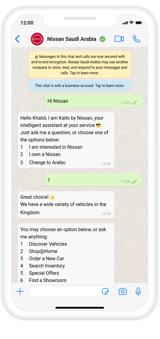 3. Компания Nissan в Саудовской Аравии, стремясь привлечь более молодых клиентов и снизить зависимость от колл-центров, начала использовать WhatsApp для обработки запросов и стимулирования продаж. В Королевстве Саудовская Аравия люди моложе 30 лет составляют почти три четверти населения. Чтобы выйти на этот рынок, Nissan разработал автоматизированного чат-бота на базе WhatsApp, который мог отвечать на простые вопросы клиентов без необходимости передачи их в колл-центр. После запуска чат-бота лиды увеличились на 390%, а входящие звонки сократились на 33%.