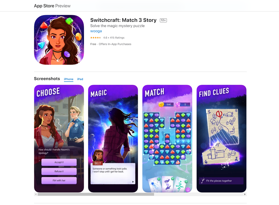 Повествование в игре жанра «три в ряд» никогда не будет эмоциональной и заурядной эпопеей. Но у него должна быть история. Даже в такой простой игре, как Candy Crush, есть уровни, которые вращаются вокруг проблем жителей Candy Kingdom. Если вы не объясните им, зачем им нужен Match 3, вы не сможете поддерживать интерес игроков.Switchcraft настолько хорошо сочетает в себе взаимодействие и повествование, что Switchcraft, запущенный в октябре, скачали более 101 000 раз и уже заработали более 110 000 долларов дохода. В Switchcraft повествование интерактивно. Это то, чего мы не видели в лучших играх Triple Play. В игре есть захватывающая история, которая переносит игроков в таинственный мир ведьм. Интерактивное повествование позволяет игрокам делать выбор, влияющий на ход истории. Кроме того, выбор игрока влияет на его отношения с другими персонажами. Например, игрокам нужно решить, могут ли они доверять профессору или однокласснику. Это заставляет игрока чувствовать себя важным и более вовлеченным в историю.