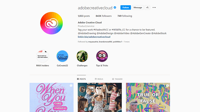 Например, сотрудники Adobe Creative Cloud знают, что их целевая аудитория — творческие профессионалы и те, кто хочет стать частью этого сообщества. Когда вы просмотрите его учетную запись в Instagram, вы обнаружите, что его контент ориентирован на эту целевую аудиторию.