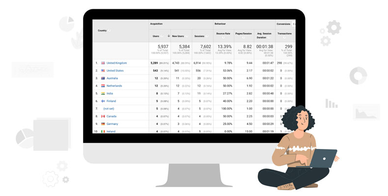 В приведенном ниже примере вы можете увидеть сайт в Великобритании, который привлекает трафик из других стран с высоким уровнем владения английским языком, и даже совершил продажу из Ирландии, несмотря на то, что в этой стране не было платной медиа-активности.