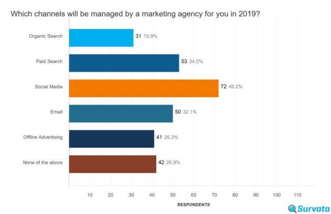 - Агентства социальных сетей были основным каналом управления: 46% респондентов заявили, что они будут использовать их для помощи в своих кампаниях в социальных сетях.