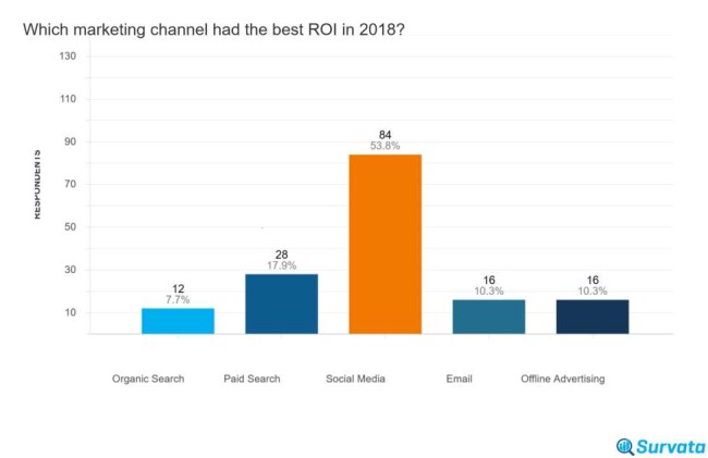 - 54% респондентов заявили, что маркетинг в социальных сетях обеспечил самую высокую рентабельность инвестиций по сравнению с любым другим маркетинговым каналом в 2018 году.